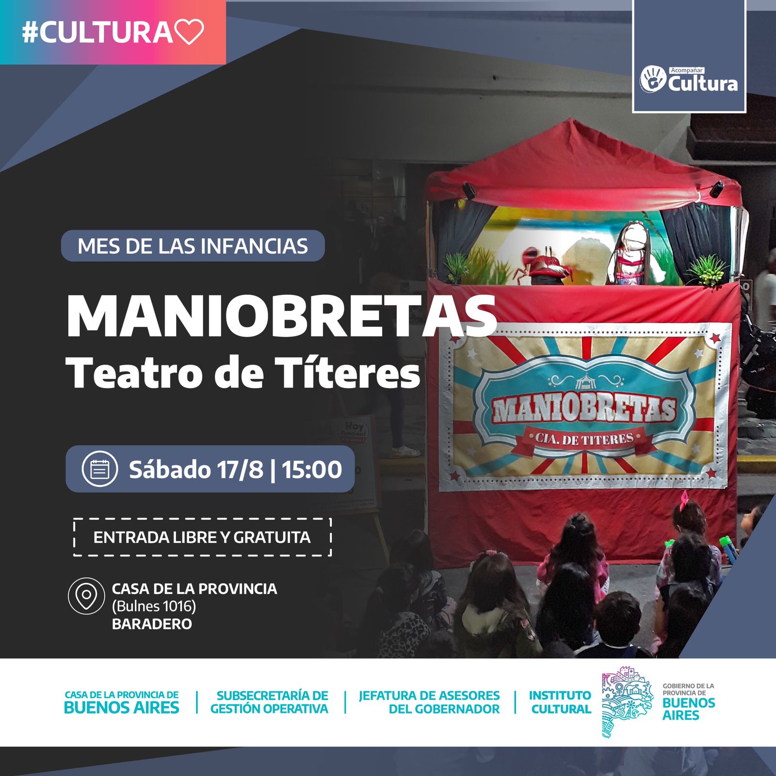 El sábado 17 de agosto a las 15 horas se podrá disfrutar de un espectáculo a cargo del grupo Maniobretas donde vamos a adentrarnos en el maravilloso mundo de las marionetas a partir de juegos, movimientos y mucho más.