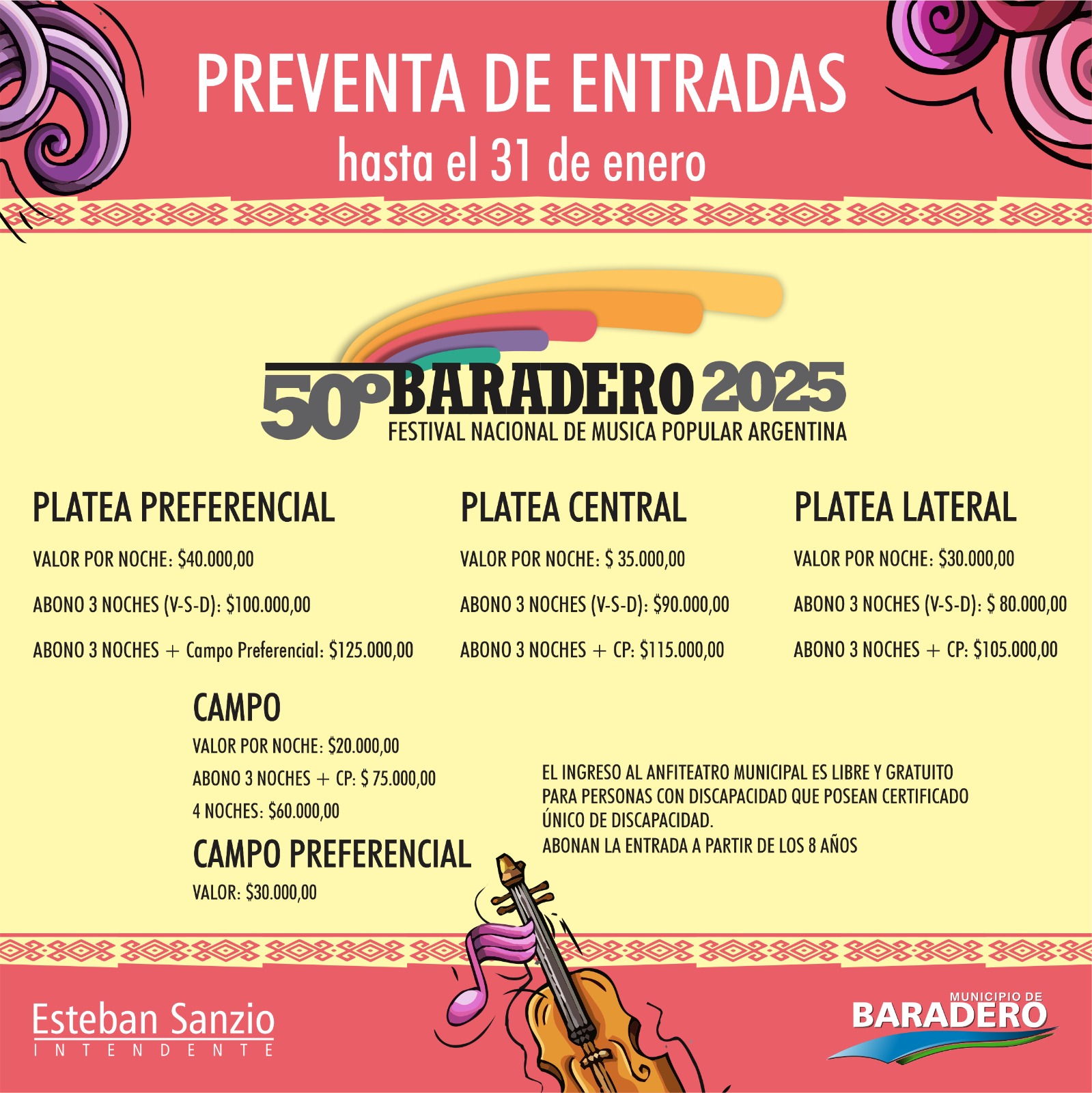 Las entradas pueden ser adquiridas a partir del viernes 24 de enero de forma presencial en la boletería del Anfiteatro Municipal, ubicada en Av. San Martín 550, en el horario de lunes a sábados de 9 a 13 y de 17 a 20 horas, y domingos de 10 a 13 horas, con todos los medios de pago habilitados.