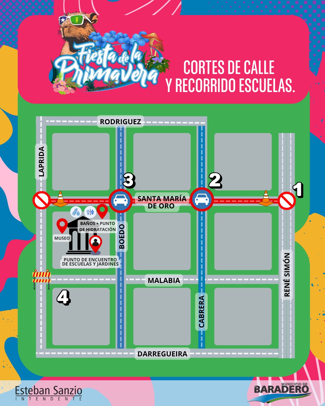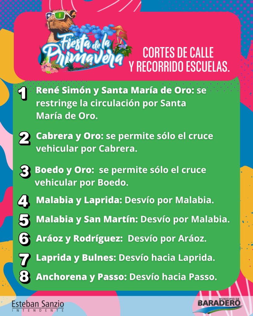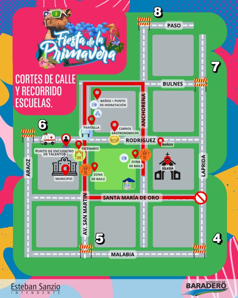 En el marco de una nueva edición de la Fiesta de la Primavera a realizarse el viernes 21 de noviembre desde las 19:30 horas en Plaza Mitre, el Municipio de Baradero informa los cortes de calles y los lugares de circulación vehicular que se producirán en la zona céntrica de la ciudad.