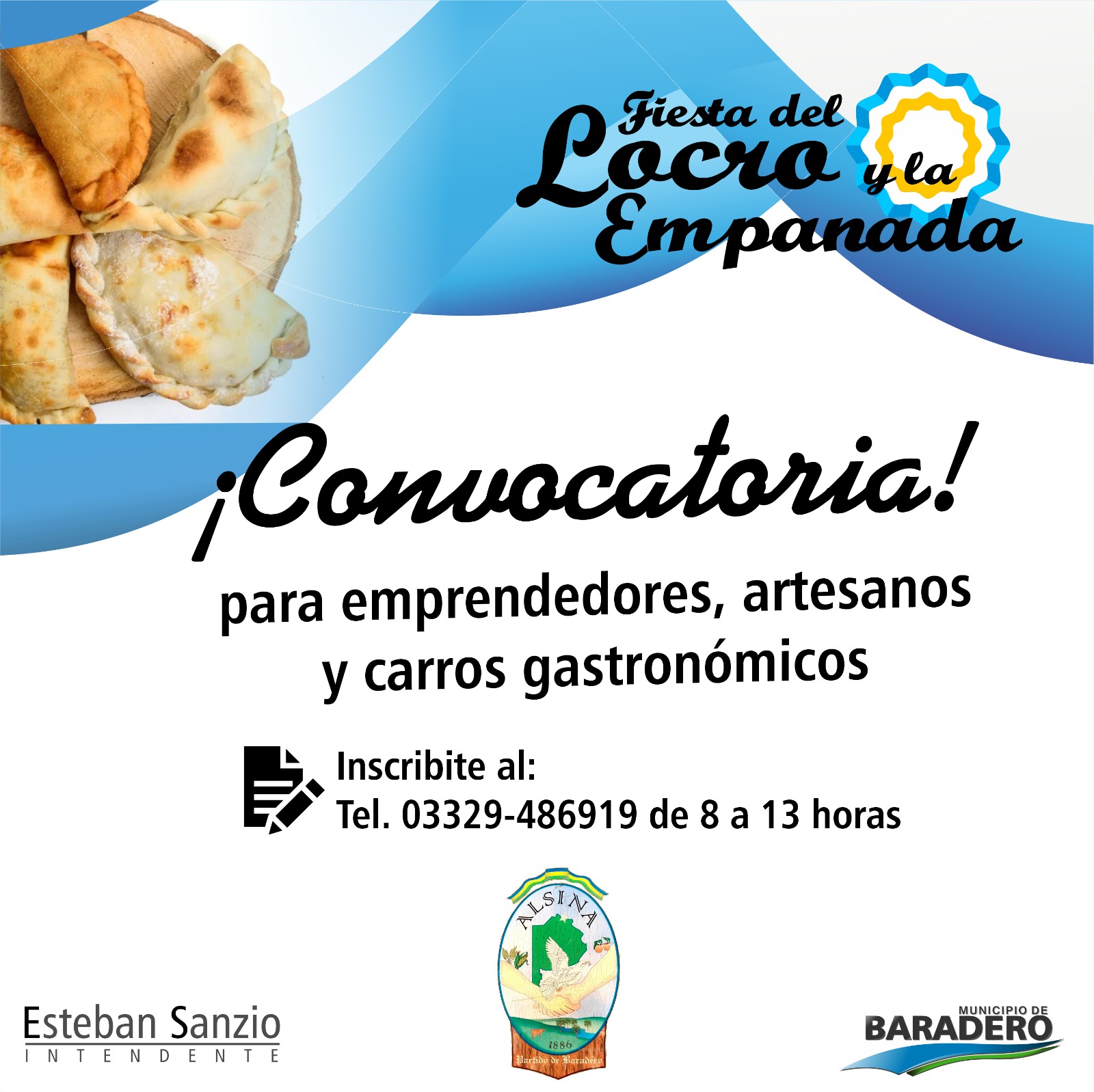El Municipio de Baradero a través de la Secretaría de Cultura, Educación, Comunicación y Deporte informa que abrió la convocatoria para que las y los emprendedores, artesanos y carros gastronómicos sean parte de la Fiesta del Locro y la Empanada que se desarrollará el domingo 9 de julio en Alsina, en el marco del Día de la Independencia.