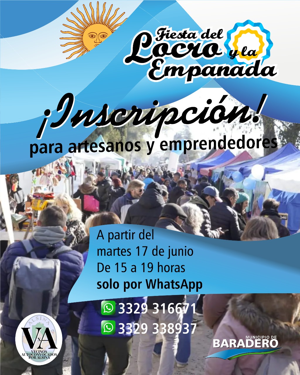 El Municipio de Baradero y Vecinos Autoconvocados por Alsina informan que ya se encuentra abierta la convocatoria para que las y los emprendedores sean parte de la Fiesta del Locro y la Empanada que se desarrollará el miércoles 9 de julio en la localidad de Alsina, en el marco del Día de la Independencia.
