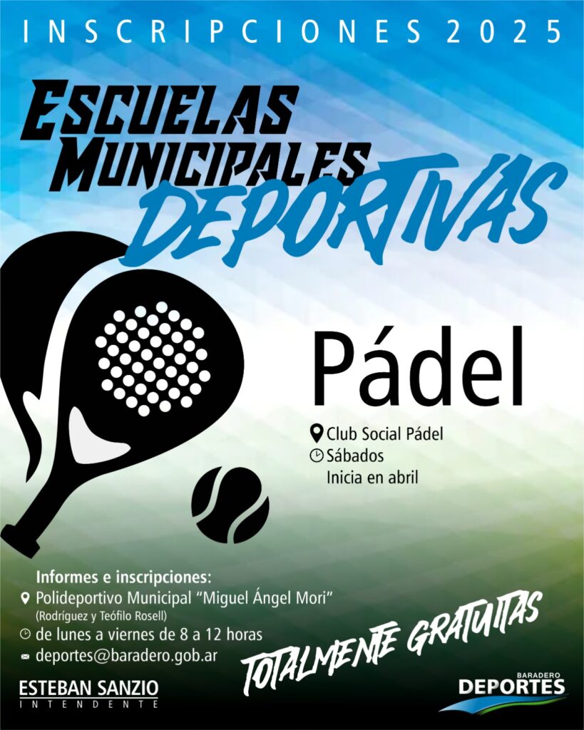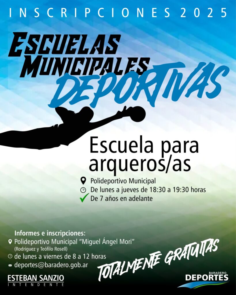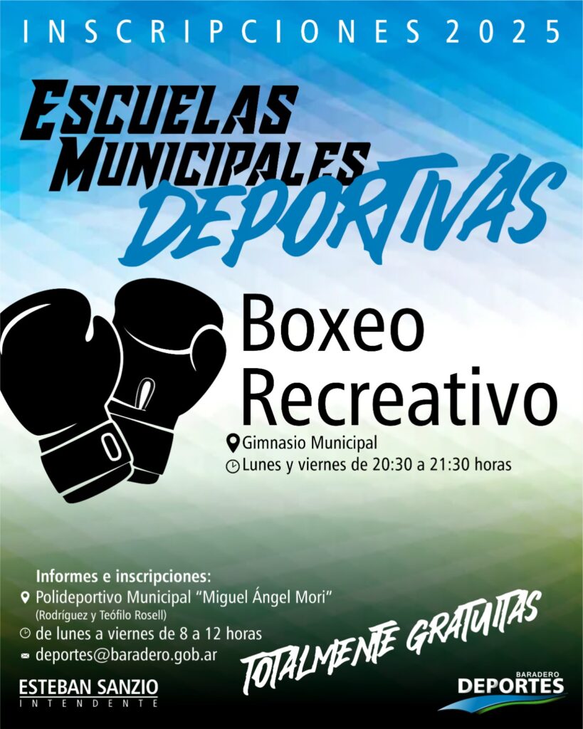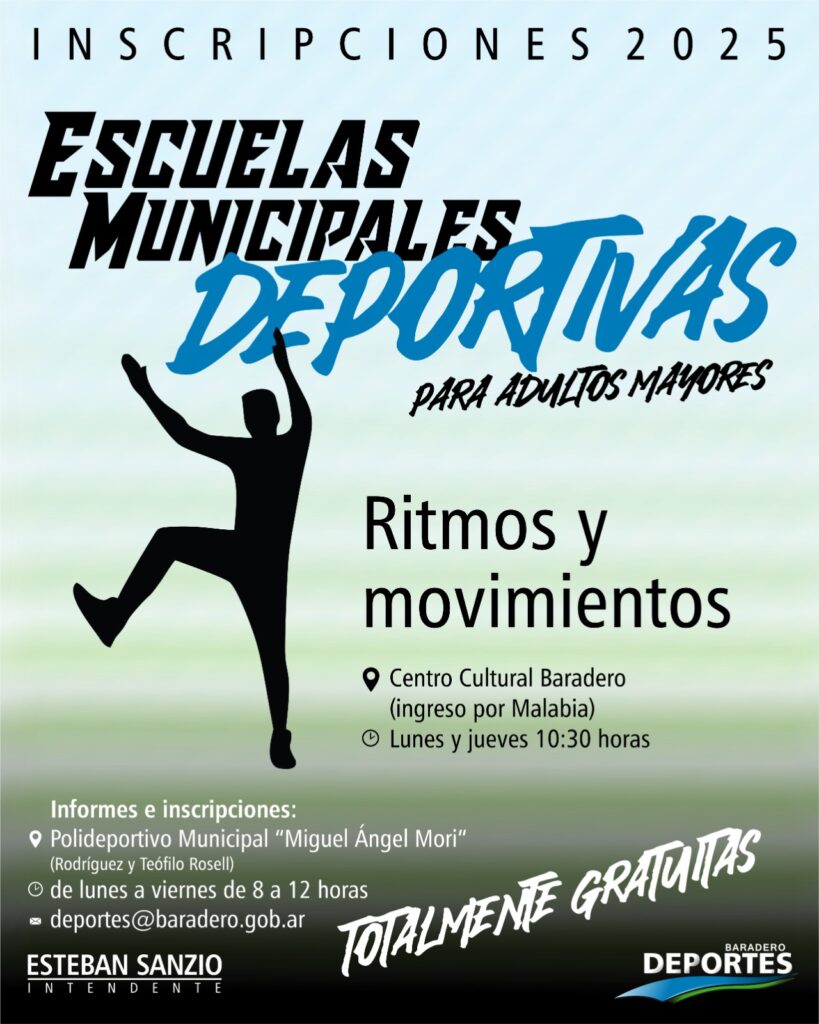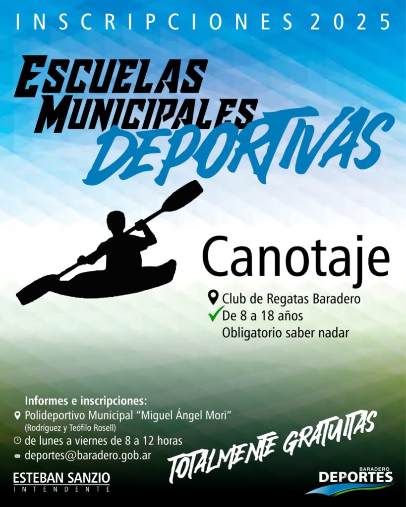El Municipio de Baradero, a través de la dirección de Deportes perteneciente a la secretaría de Cultura, Educación, Comunicación y Deporte, informa que se encuentra abierta la inscripción para las Escuelas Deportivas Municipales, totalmente gratuitas y dirigidas a toda la comunidad de Baradero en las siguientes disciplinas: Canotaje, Handball, Hockey, Vóley, Mini Vóley, Atletismo, Mini Atletismo, Arqueros y Arqueras, Yoga, Boxeo Recreativo, Pádel, Ajedrez; y para Adultas y Adultos Mayores, Educación Física y Ritmos y Movimientos.