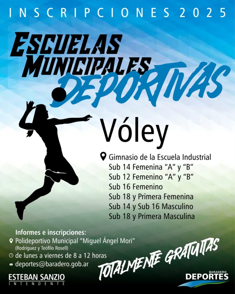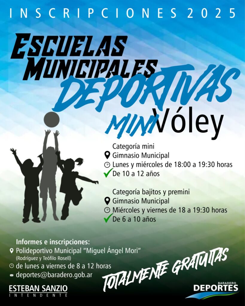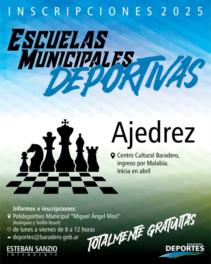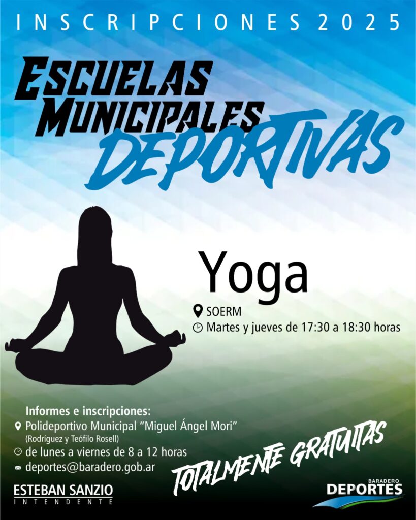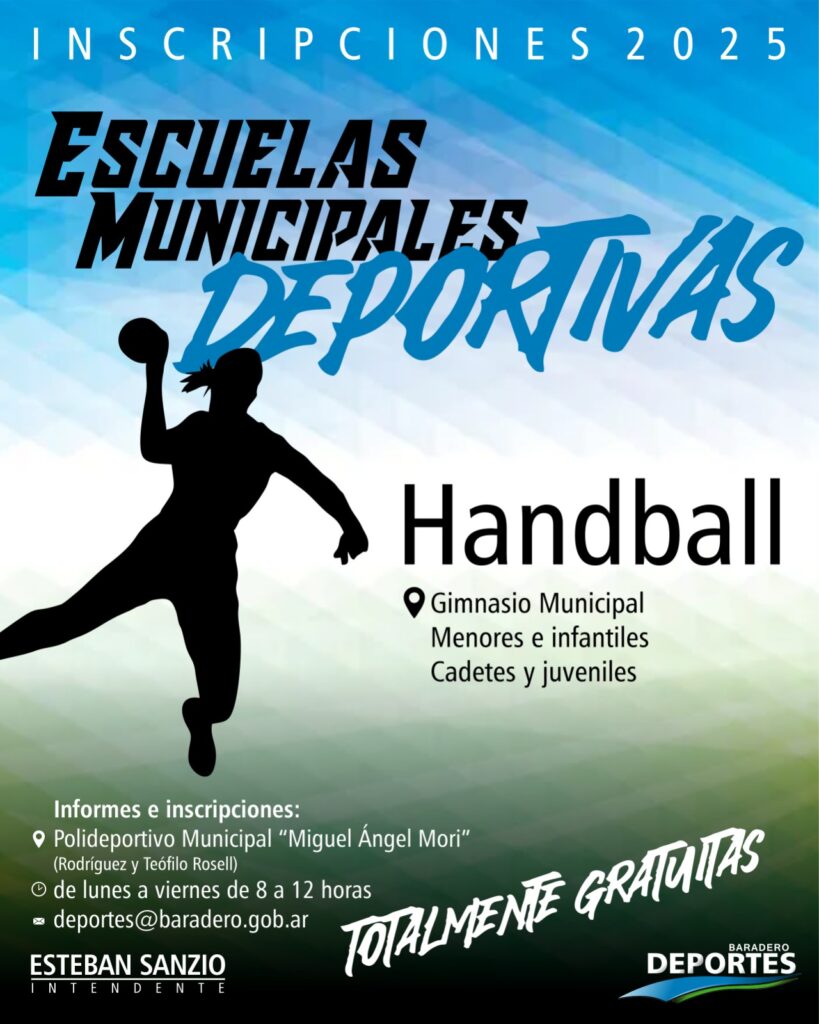 El Municipio de Baradero, a través de la dirección de Deportes perteneciente a la secretaría de Cultura, Educación, Comunicación y Deporte, informa que se encuentra abierta la inscripción para las Escuelas Deportivas Municipales, totalmente gratuitas y dirigidas a toda la comunidad de Baradero en las siguientes disciplinas: Canotaje, Handball, Hockey, Vóley, Mini Vóley, Atletismo, Mini Atletismo, Arqueros y Arqueras, Yoga, Boxeo Recreativo, Pádel, Ajedrez; y para Adultas y Adultos Mayores, Educación Física y Ritmos y Movimientos.
