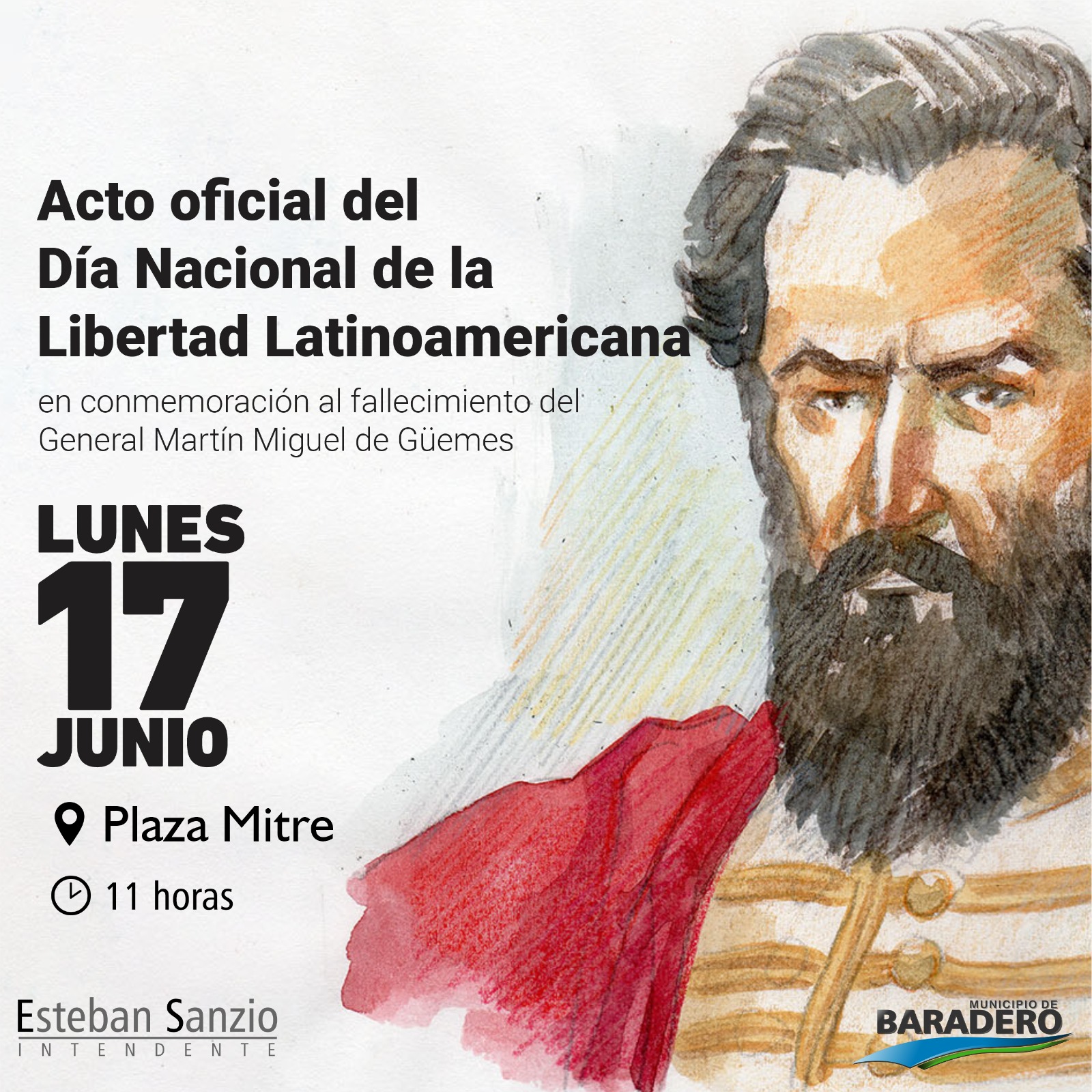 El Municipio de Baradero invita a la comunidad a ser parte del acto oficial en conmemoración del Día Nacional de la Libertad Latinoamericana, a desarrollarse el lunes 17 de junio en su Monumento ubicado en Plaza Mitre, a las 11 horas.