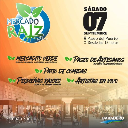 El Municipio de Baradero informa que este sábado 7 de septiembre se concretará una nueva edición de Mercado Raíz en el Paseo del Puerto, con propuestas y actividades imperdibles para disfrutar con amigas, amigos o en familia.