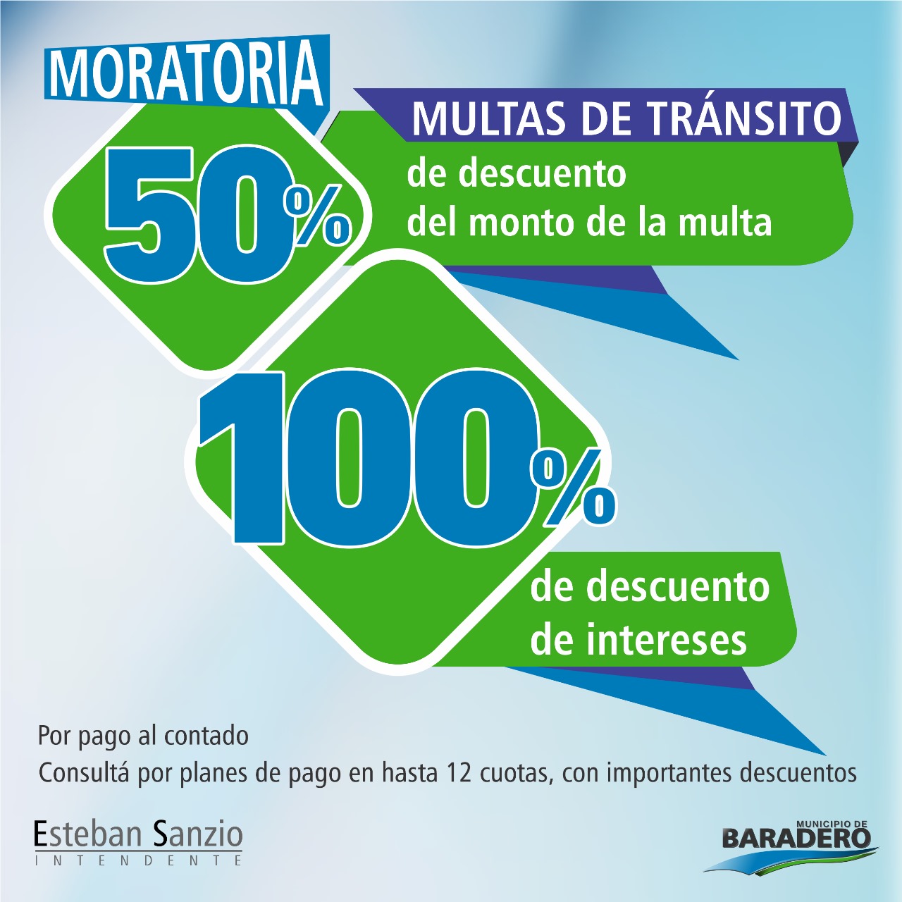 El Municipio de Baradero informa que se encuentra abierta la posibilidad de acceder a una moratoria para cancelar multas de tránsito, con las alternativas de hacerlo en efectivo o en cuotas, con importantes descuentos.