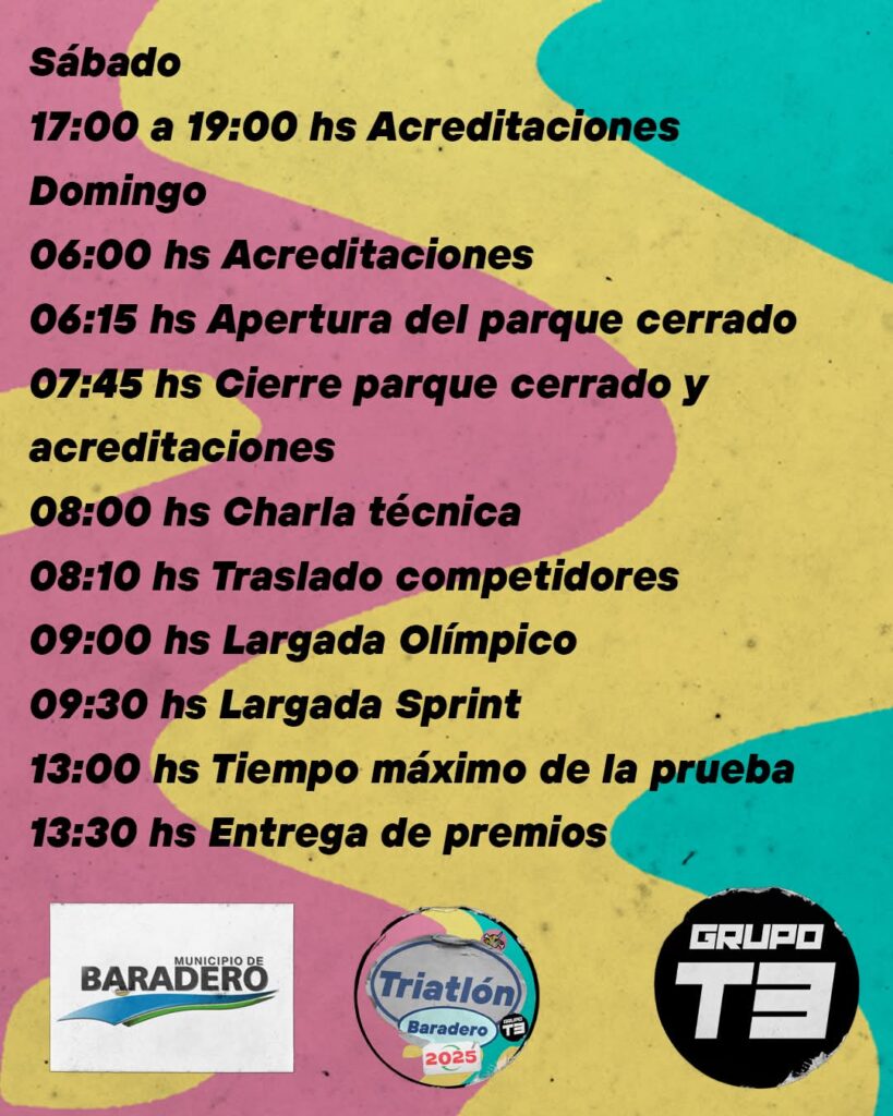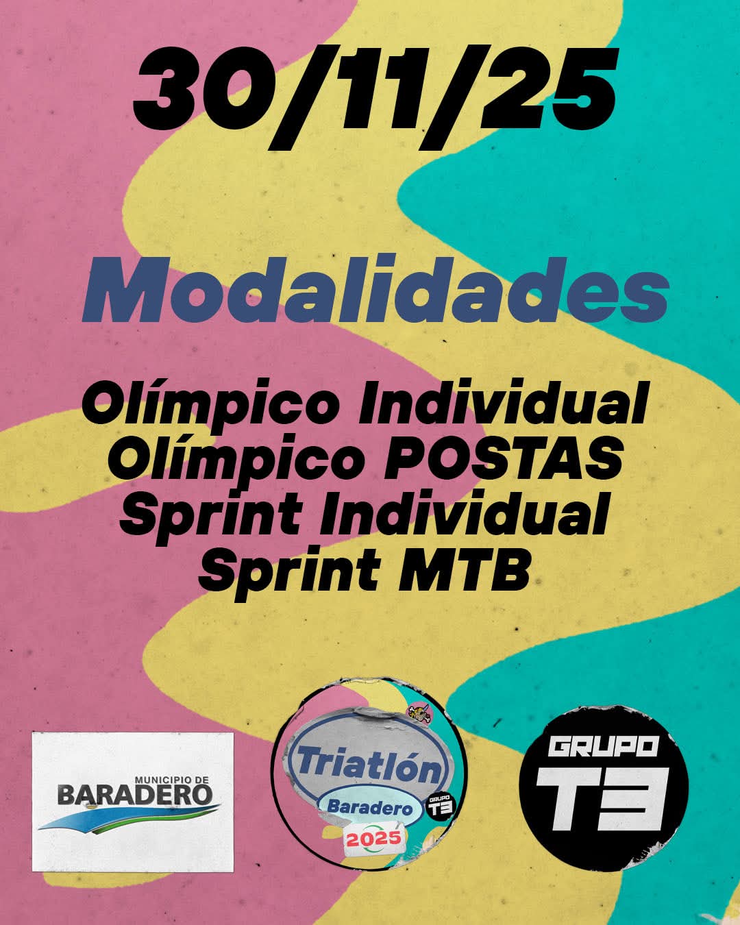 El Municipio de Baradero y el Grupo T3 informan a la comunidad que el domingo 30 de noviembre se llevará adelante el Triatlón Olímpico y Sprint Baradero, un evento deportivo de alcance nacional que implicará cortes de tránsito entre las 7:00 y las 12:30 horas para garantizar el normal desarrollo del mismo.