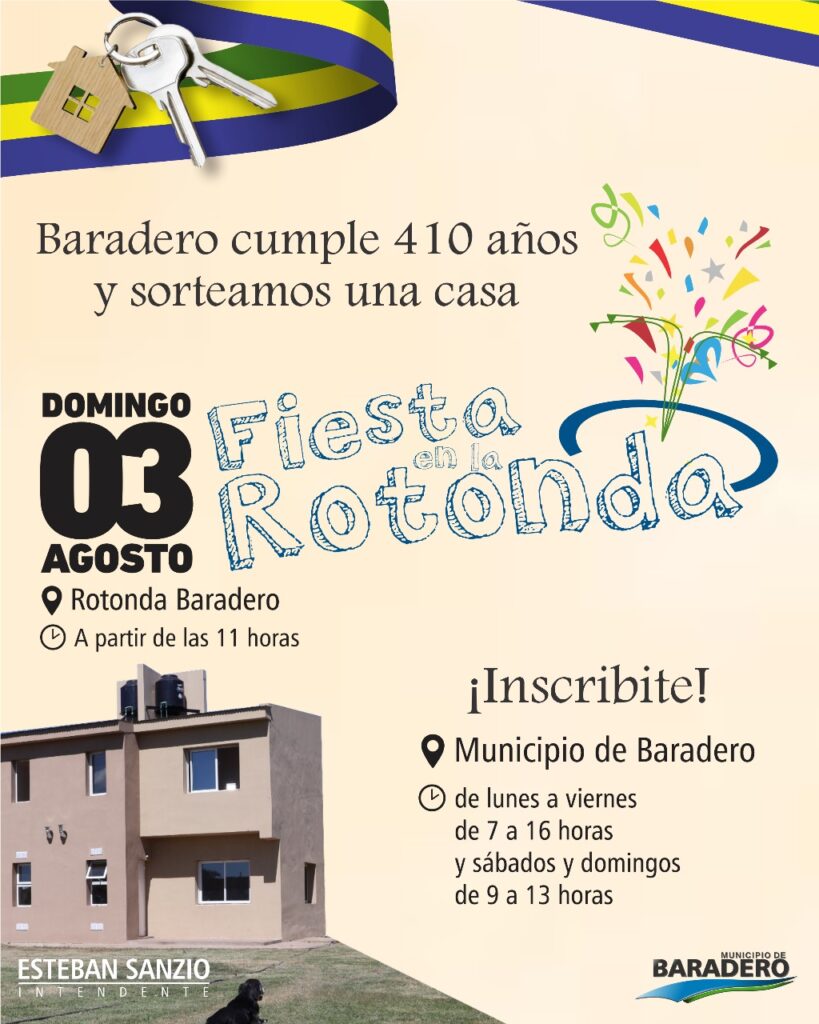 El Municipio de Baradero invita a toda la comunidad a ser parte de La fiesta de la Rotonda que se desarrollará el domingo 3 de agosto a partir de las 11 horas.
