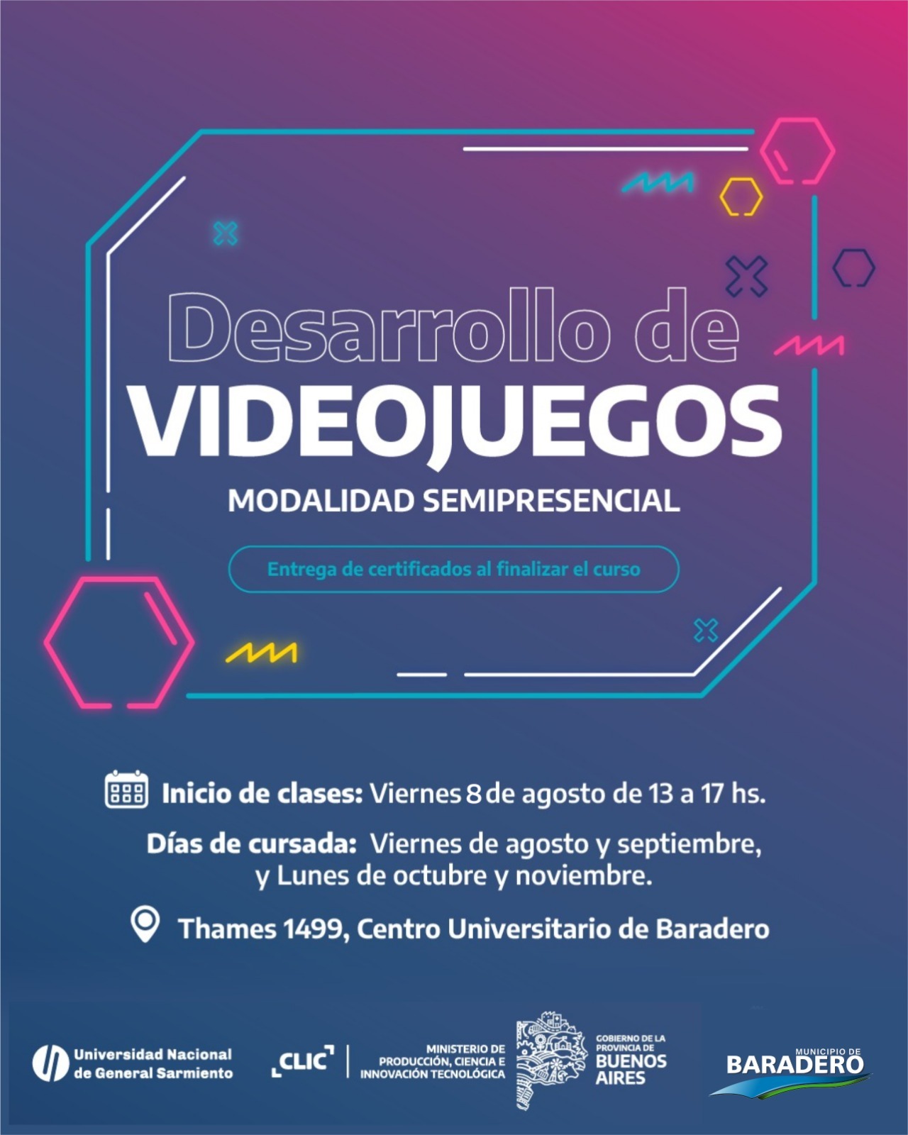 El dictado del dicho curso, que se desarrolla en el marco del Programa «Centros Locales de Innovación y Cultura» del Ministerio de Producción, Ciencia e Innovación Tecnológica de la provincia de Buenos Aires, estará a cargo de docentes de la Universidad Nacional de General Sarmiento.