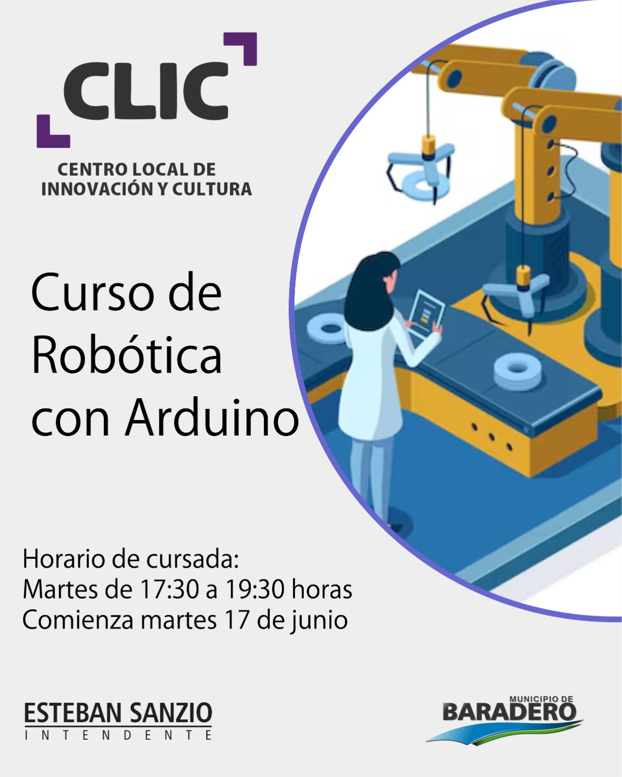 El Municipio de Baradero, a través de la Dirección de Juventudes y el Centro Local de Innovación y Cultura (CLIC), informa que se encuentra abierta la inscripción para dos nuevos cursos: Robótica con Arduino y Creación de Páginas Web con Python.