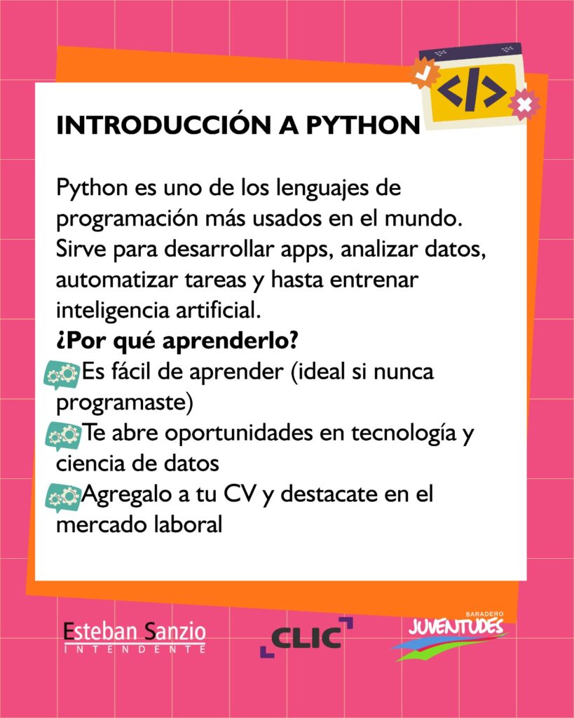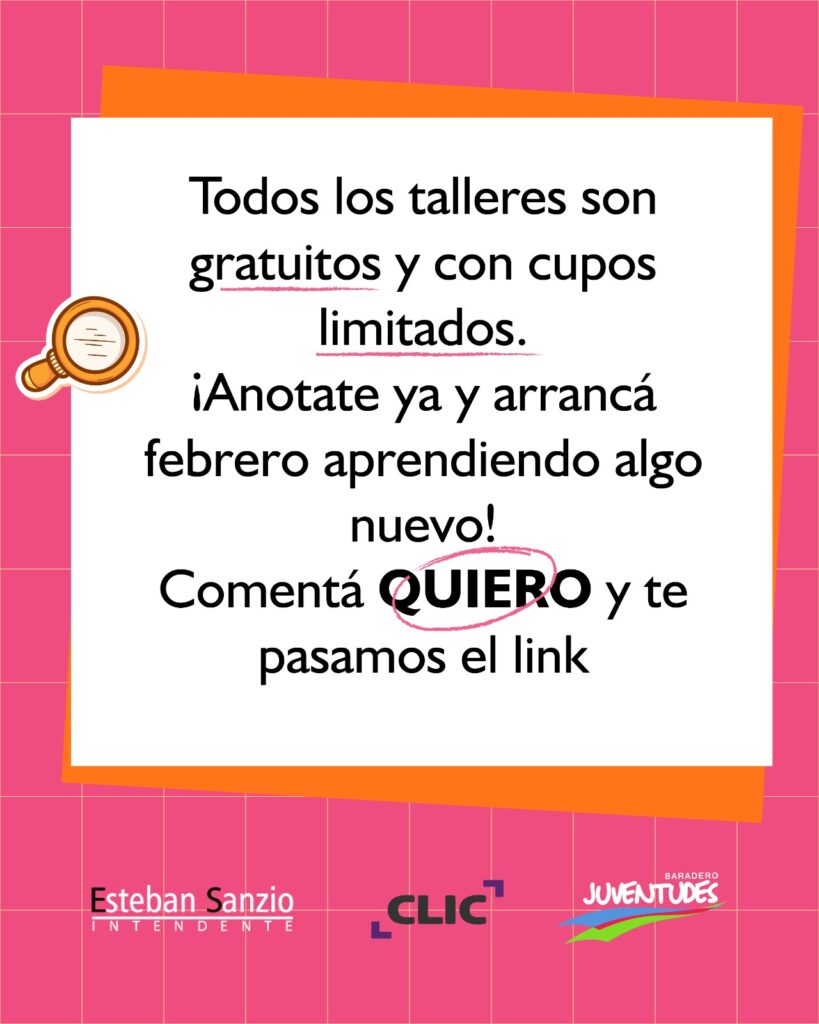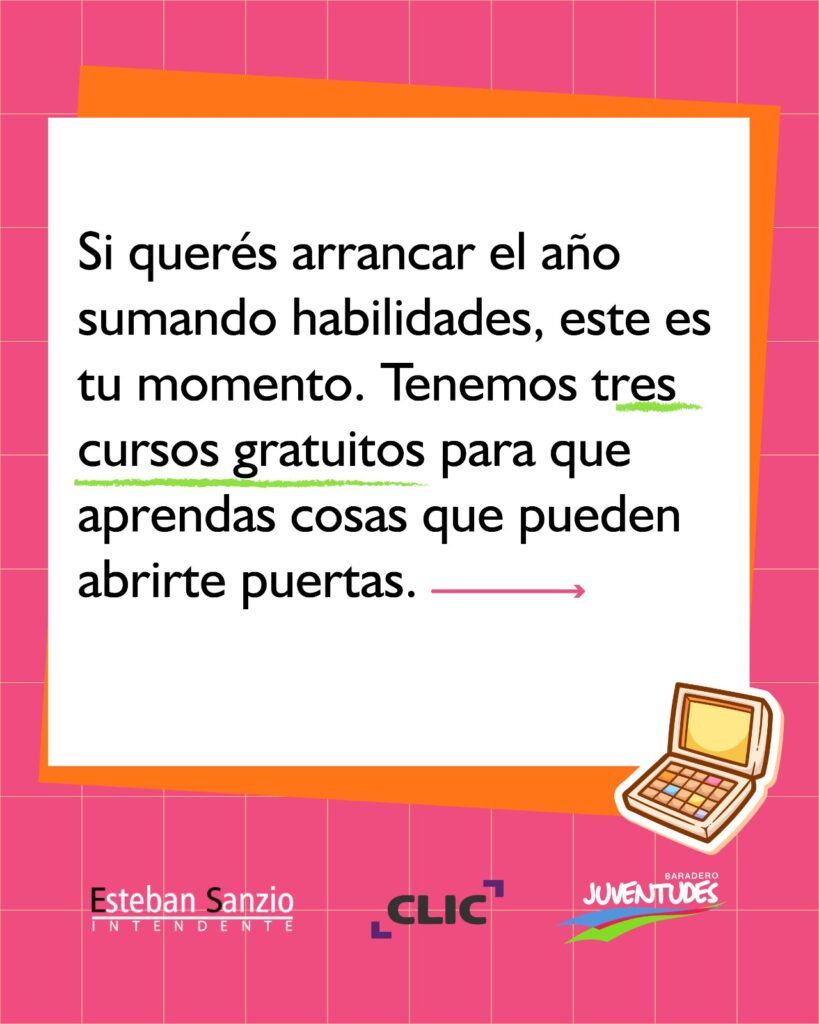 El Municipio de Baradero informa que la Dirección de Juventudes y el Centro Local de Innovación y Cultura (CLIC) llevarán adelante tres talleres tecnológicos con el objetivo de continuar brindando herramientas tecnológicas útiles para jóvenes.