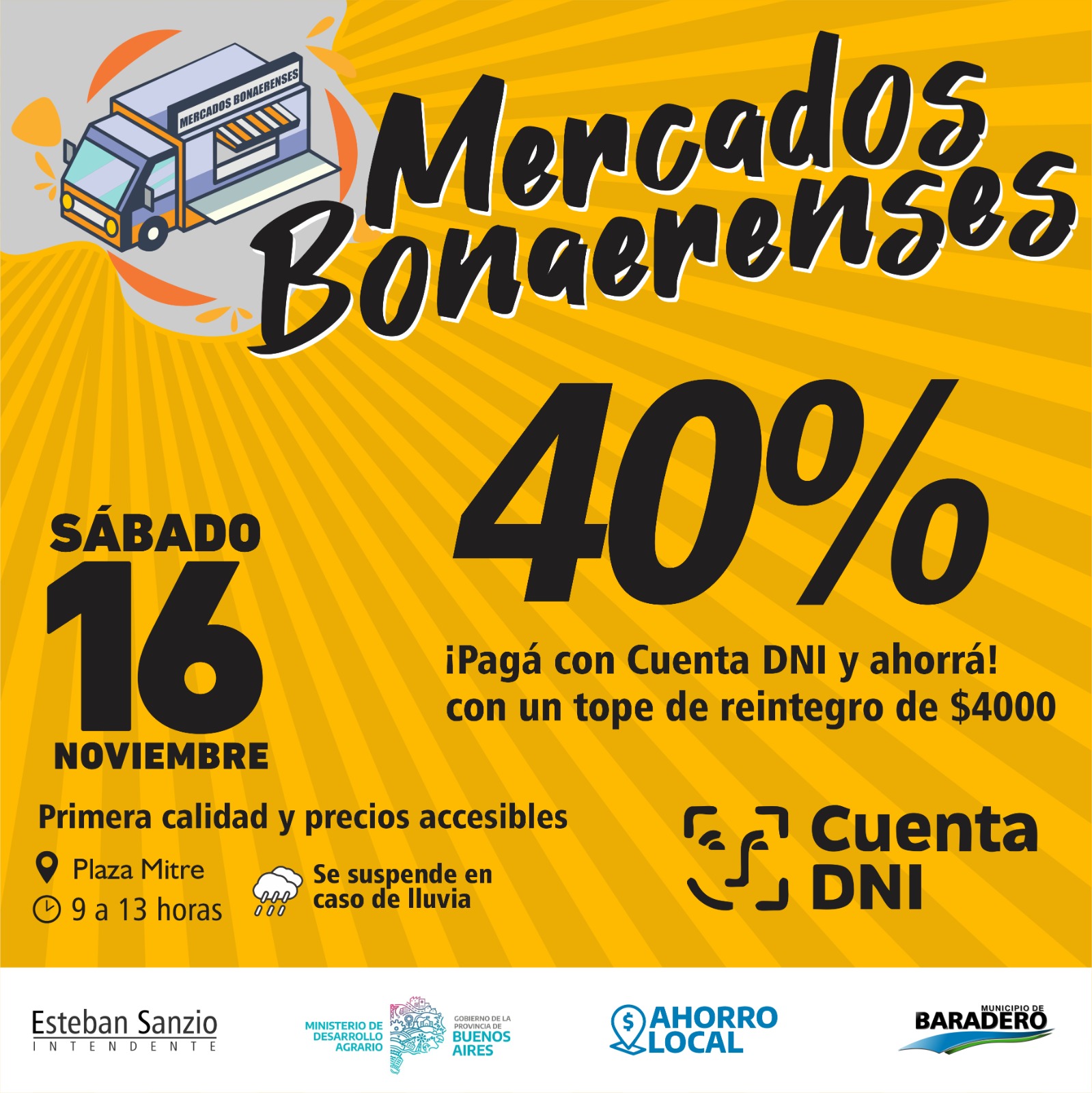 El Municipio de Baradero informa que este sábado 16 de noviembre llega a Baradero una nueva edición de Mercados Bonaerenses, el programa del Ministerio de Desarrollo Agrario que permite acercar a productores y consumidores.