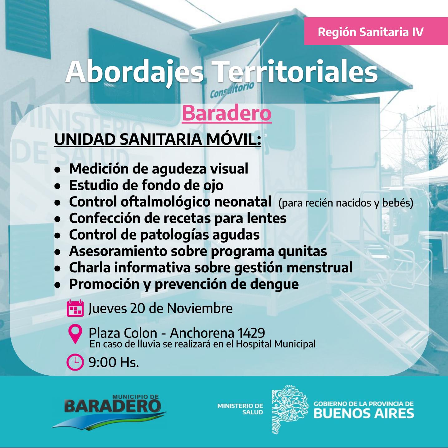 El Municipio de Baradero, a través de la Secretaría de Salud y en articulación con la Región Sanitaria IV, invita a toda la comunidad a participar del operativo de salud que se llevará a cabo este jueves 20 de noviembre, desde las 9:00 horas, en Plaza Colón.
