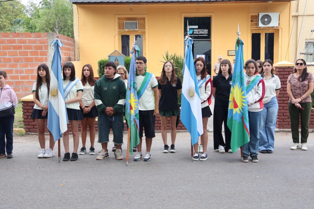 En el acto tuvo su inicio con el izamiento de la bandera de ceremonia de Prefectura Naval Argentina Baradero para luego continuar con palabras alusivas a la fecha.
