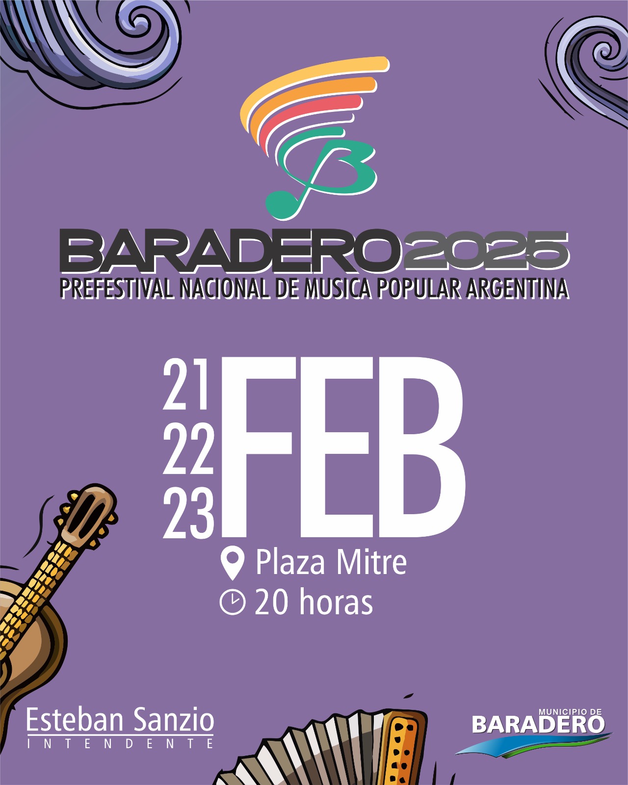 El viernes 21, sábado 22 y domingo 23 de febrero a partir de las 20 horas se llevará adelante en Plaza Mitre la Final Nacional del Prefestival Baradero 2025, de cara al Festival Nacional de Música Popular Argentina que se concretará el 28 de febrero, 1, 2 y 3 de marzo en el Anfiteatro Municipal.