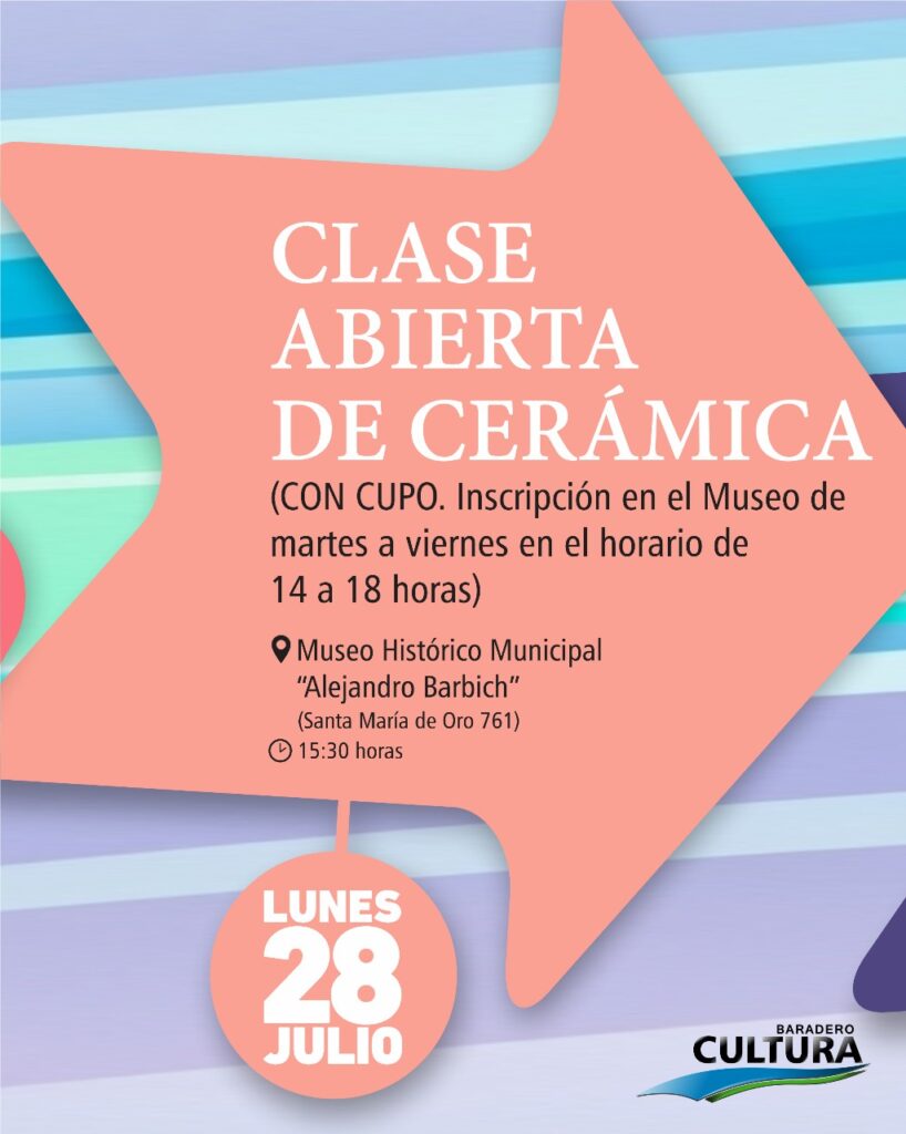 -Clase abierta de cerámica – Con inscripción previa y cupo.15.30 horas en el Museo Histórico Municipal “Alejandro Barbich” (Santa María de Oro 761)