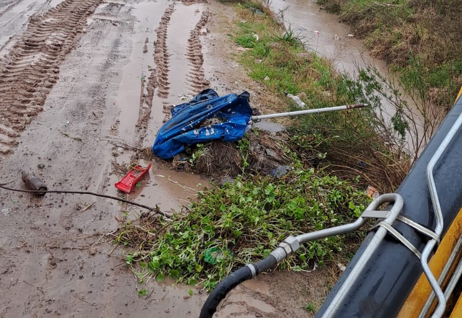 Estas imágenes corresponden al desagüe de calle San Lorenzo que estaba completamente obstruido por ramas, cartones, cajas y hasta una sombrilla.