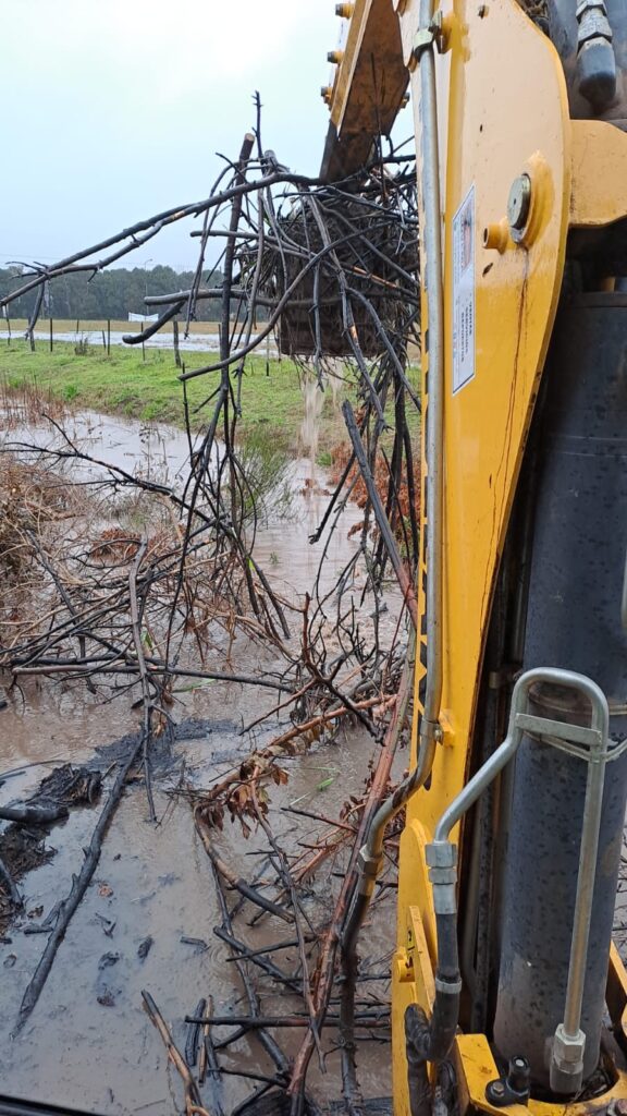 Durante este martes, cuadrillas de la Secretaria de Servicios Públicos -que dirige Gustavo Bogado- estuvieron abocados a la limpieza de desagües. En Baradero cayeron 120 mm y se generaron problemas de anegamiento en distintas calles.