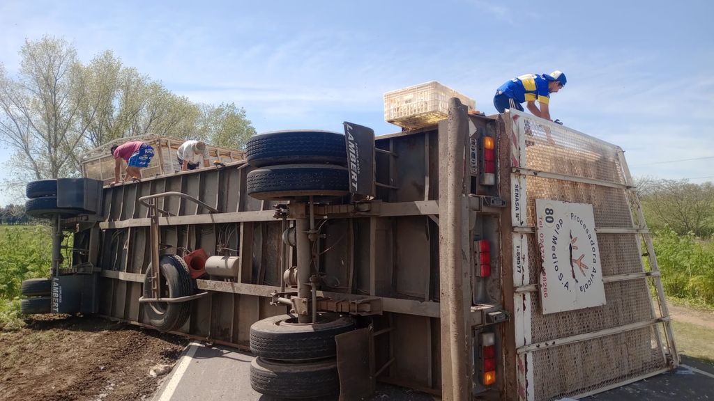 El accidente ocurrió este lunes al mediodía, cuando un vehículo que transportaba pollos volcó su acoplado en el kilómetro 18.